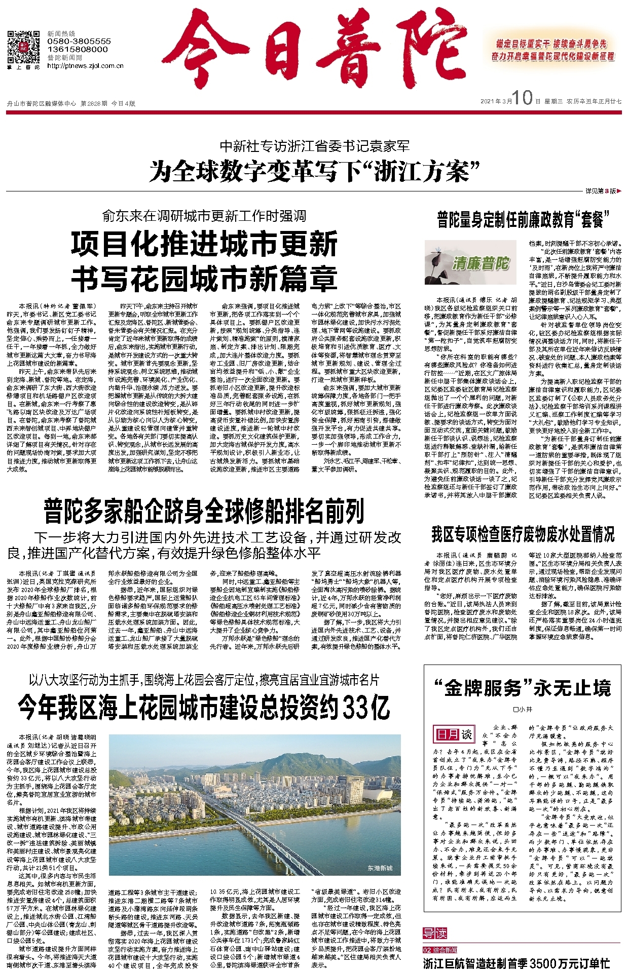 今年我区海上花园城市建设总投资约33亿