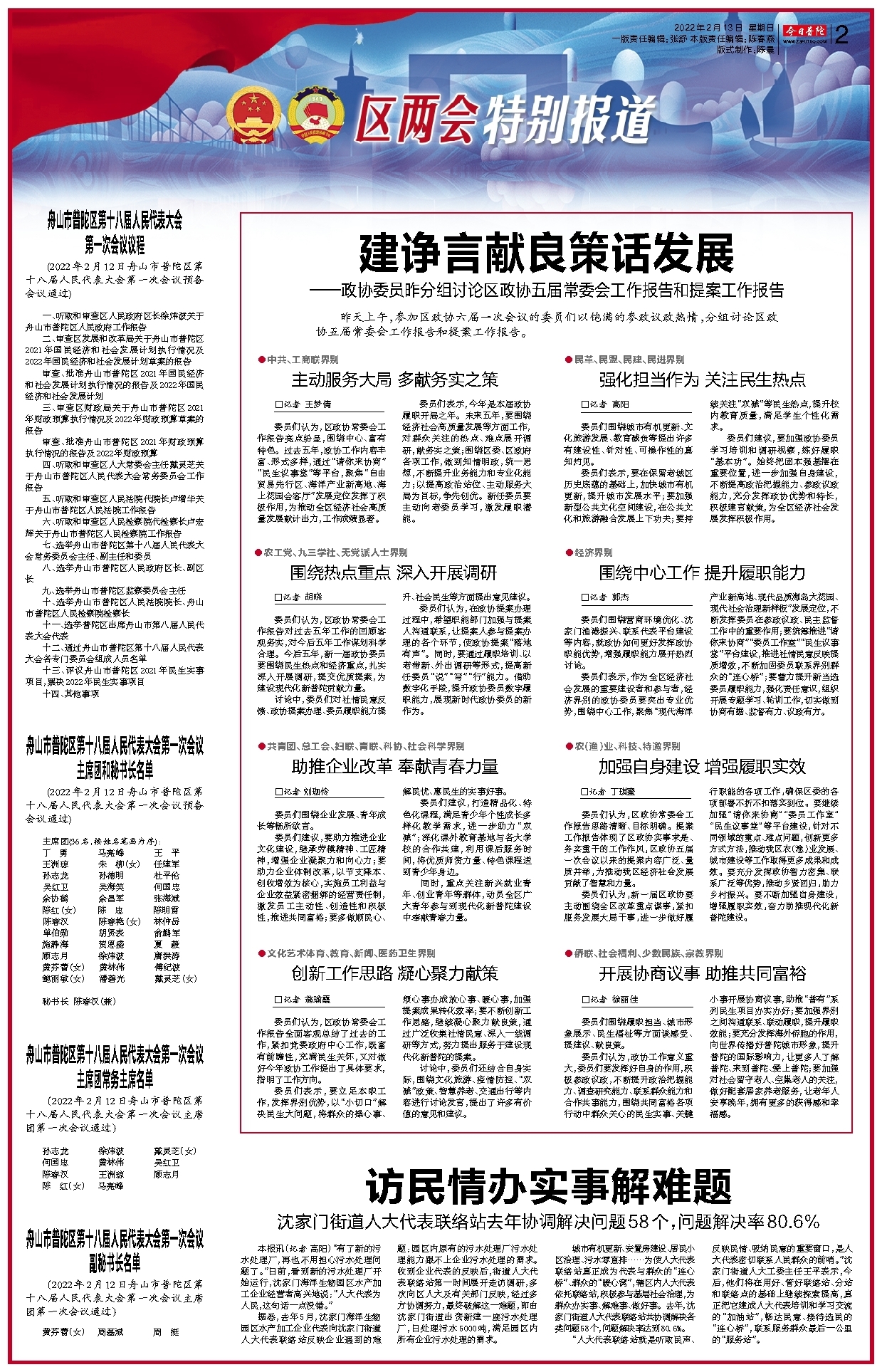 - ●民革、民盟、民建、民进界别 强化担当作为 关注民生热点